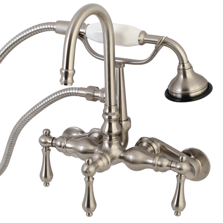 Kingston Heirloom AE301T8 - Aqua Vintage Three-Handle 2-Hole Tub Wall Mount Clawfoot Tub Faucet with Hand Shower, Brushed Nickel