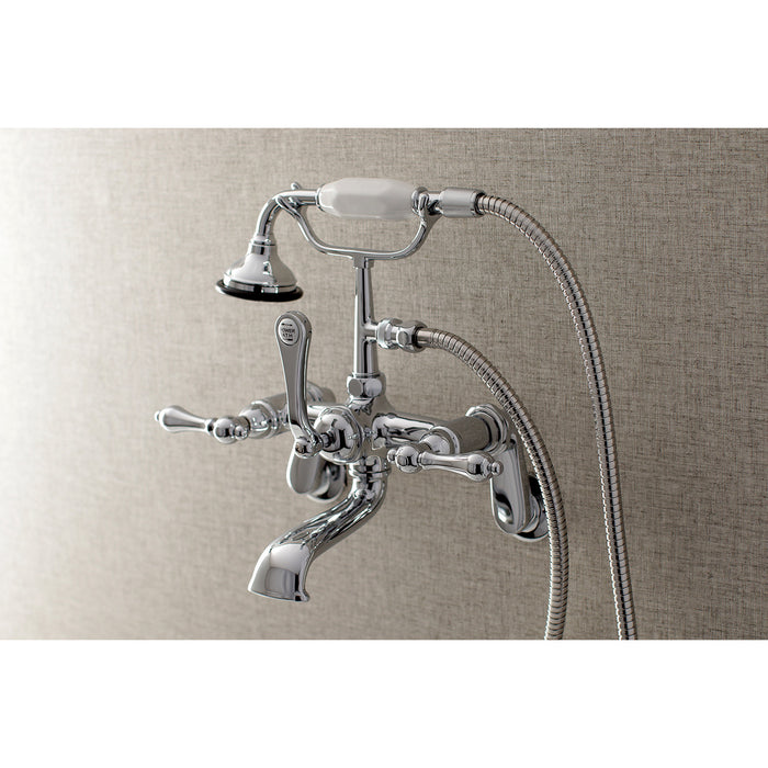 Kingston Heirloom AE52T1 - Aqua Vintage Three-Handle 2-Hole Tub Wall Mount Clawfoot Tub Faucet with Hand Shower, Polished Chrome
