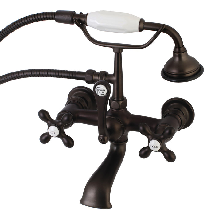 Kingston Heirloom AE557T5 - Aqua Vintage Three-Handle 2-Hole Tub Wall Mount Clawfoot Tub Faucet with Hand Shower, Oil Rubbed Bronze