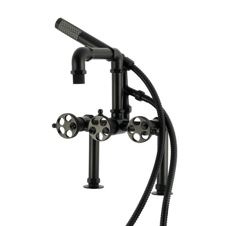 Kingston Sona AE6400RKX - Webb Three-Handle 2-Hole Deck-Mount Clawfoot Tub Faucet with Knurled Handle and Hand Shower, Matte Black
