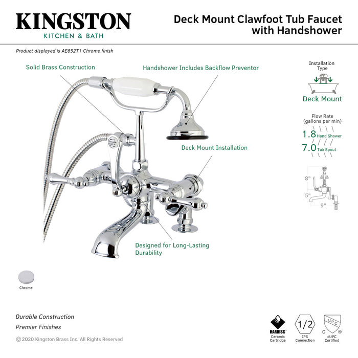 Kingston Heirloom AE652T1 - Vintage Three-Handle 2-Hole Deck-Mount Clawfoot Tub Faucet with Hand Shower, Polished Chrome