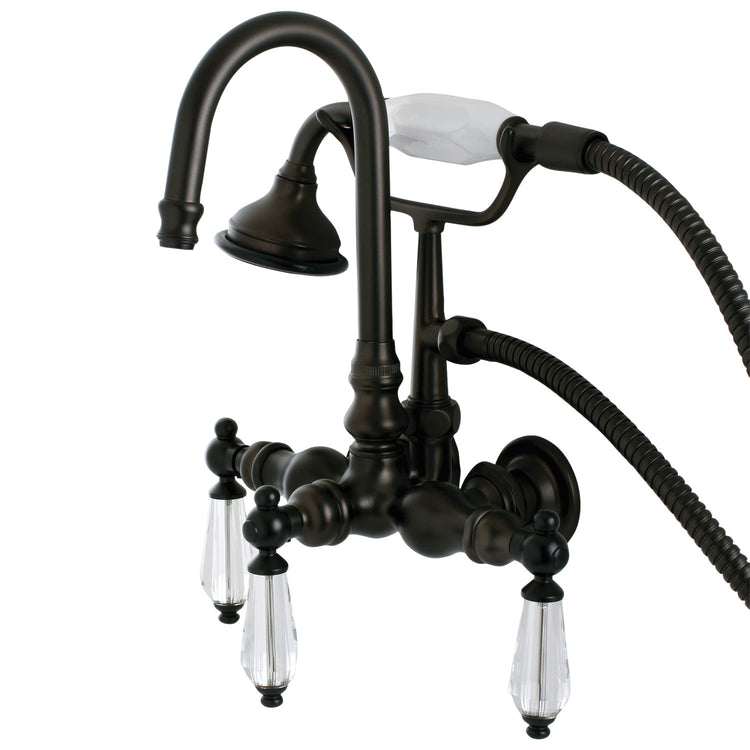 Kingston Heirloom AE7T5WLL - Wilshire Three-Handle 2-Hole Tub Wall Mount Clawfoot Tub Faucet with Hand Shower, Oil Rubbed Bronze