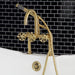 A touch of vintage charm alongside sleek, modern design come together within this deck-mount clawfoot tub faucet. As the perfect complement to your tub, this will complete your refined bathroom decorum with the help of its premium, glistening brushed brass finish and telephone style hand shower. The solid brass construction also makes for a heavy, quality made product.