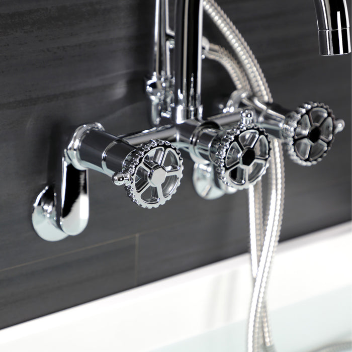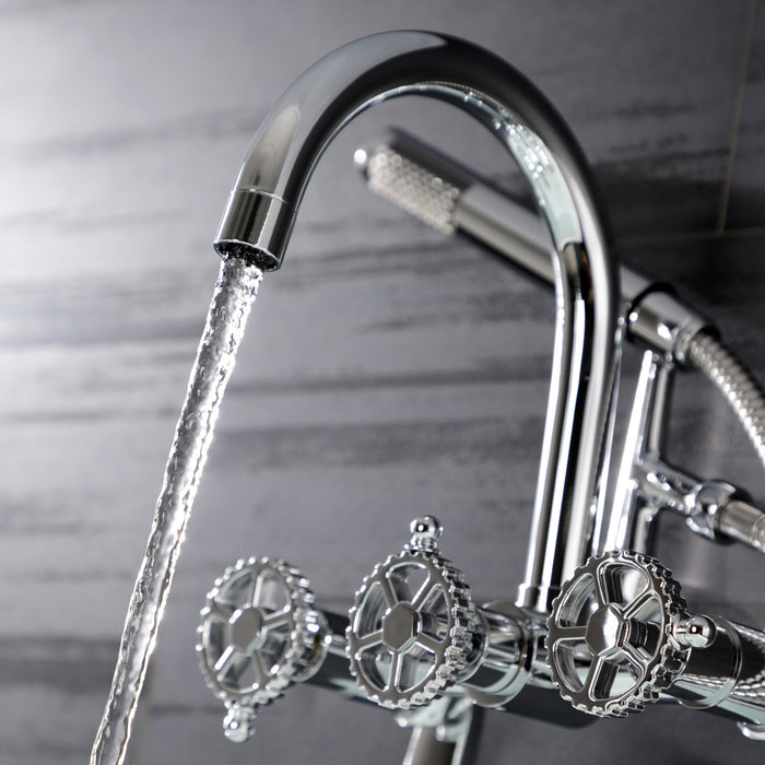 Kingston Sona AE8151CG - Fuller Three-Handle 2-Hole Tub Wall Mount Clawfoot Tub Faucet with Hand Shower, Polished Chrome