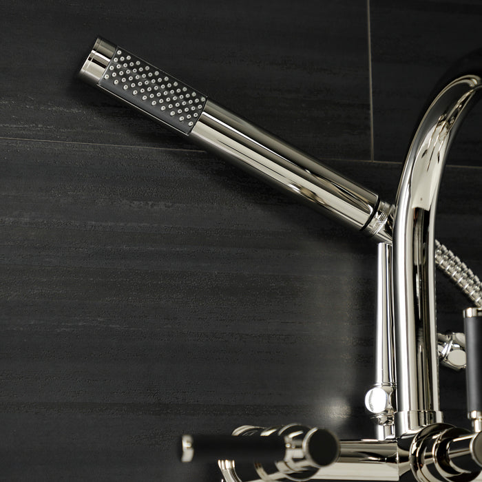 Kingston Sona AE8156DKL - Kaiser Three-Handle 2-Hole Tub Wall Mount Clawfoot Tub Faucet with Hand Shower, Polished Nickel