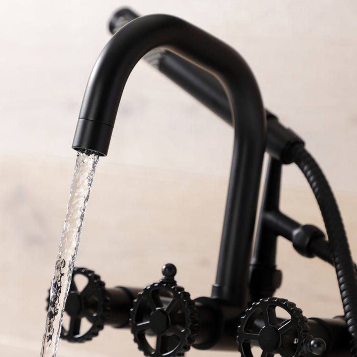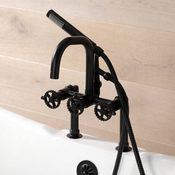 Kingston Sona AE8400CG - Fuller Three-Handle 2-Hole Deck-Mount Clawfoot Tub Faucet with Hand Shower, Matte Black