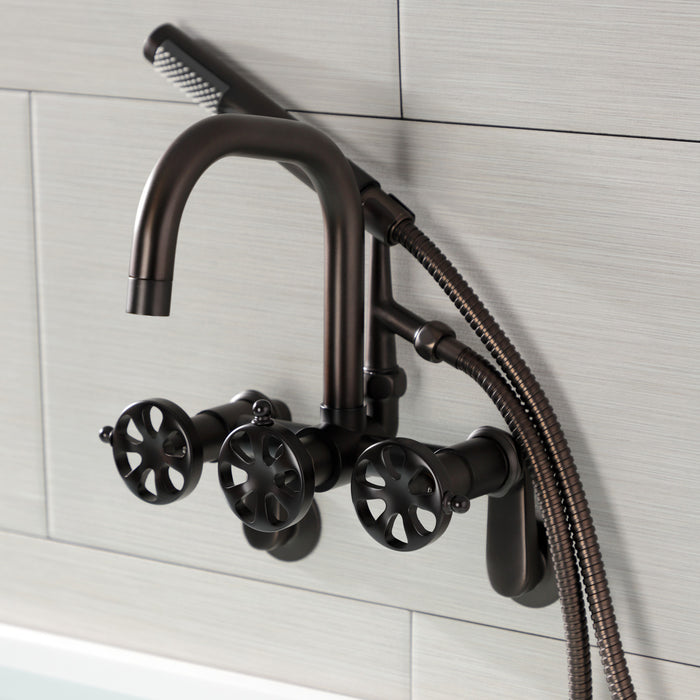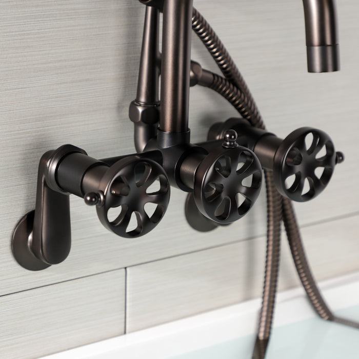 Kingston Sona AE8455RX - Belknap Three-Handle 2-Hole Wall Mount Clawfoot Tub Faucet with Hand Shower, Oil Rubbed Bronze