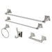 This all inclusive set of bathroom accessories features intricate detailing for a luxurious and astonishing style. Any bathroom will be given an added boost of opulence from these coordinated pieces. Two towel bars, towel ring, robe hook, and a toilet paper holder are included for all of your hanging storage needs. Available in multiple, durable finishes.