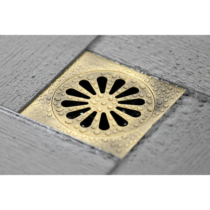 Kingston Watercourse BSF4161AB Sunburst 4-Inch Brass Square Grid Shower Drain with Flange and Hair Trap, Antique Brass