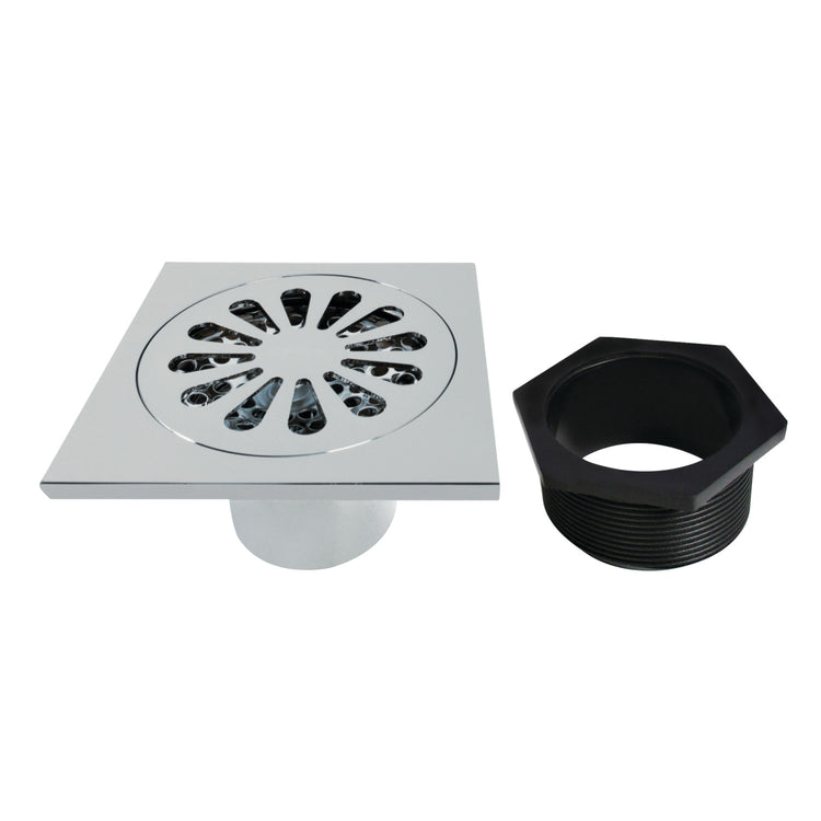 Watercourse BSF4161C Sunburst 4-Inch Brass Square Grid Shower Drain with Flange and Hair Trap, Polished Chrome