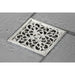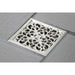 The Watercourse collection features an array of shower drains in multiple finishes. From simple, non-obtrusive grid-cut floor drains to ornate embossed floral patterns the Watercourse collection offers a range of selections. Watercourse drains install a variety of ways and fit a range of both square and circular drain openings. Please see each drain for its detailed specifications and compatibility. The Scroll drain flange in the Watercourse collection fits a 4" x 4" square and features an ornate scrollwork design hair catcher to prevent foreign objects entering your drain. The design comes in Chrome, Polished Brass, Antique Brass, Oil Rubbed Bronze, Polished Nickel, Brushed Brass, Brushed Nickel and Matte Black to match nearly any fixture and any design.
