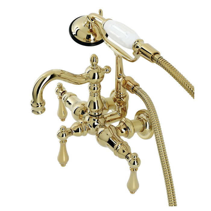 Kingston Heirloom CA1007T2 - Heritage Three-Handle 2-Hole Tub Wall Mount Clawfoot Tub Faucet with Hand Shower, Polished Brass