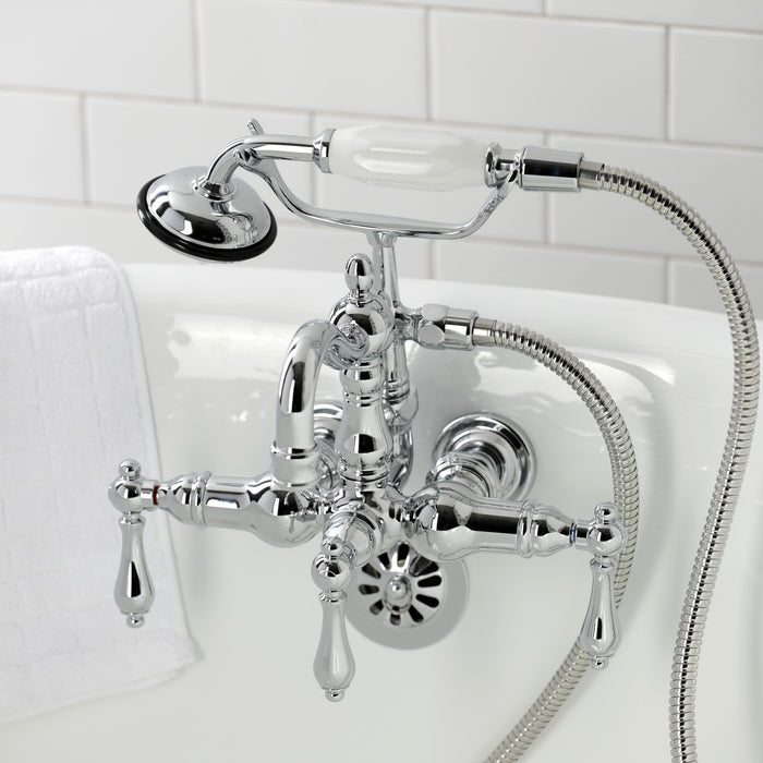 Kingston Heirloom CA1008T1 - Heritage Three-Handle 2-Hole Tub Wall Mount Clawfoot Tub Faucet with Hand Shower, Polished Chrome