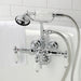 Wall mount clawfoot tub faucets are the perfect fixture to add decorative flair within your bathroom because of their unique architectural elements. With vintage opulence, this will complete your refined bathroom decorum with the help of its premium polished chrome finish and traditionally styled handheld shower. The solid brass construction also makes for a heavy, quality made product.