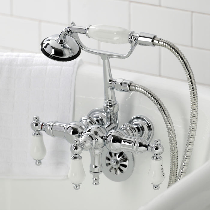 Kingston Heirloom CA22T1 - Vintage Three-Handle 2-Hole Tub Wall Mount Clawfoot Tub Faucet with Hand Shower, Polished Chrome