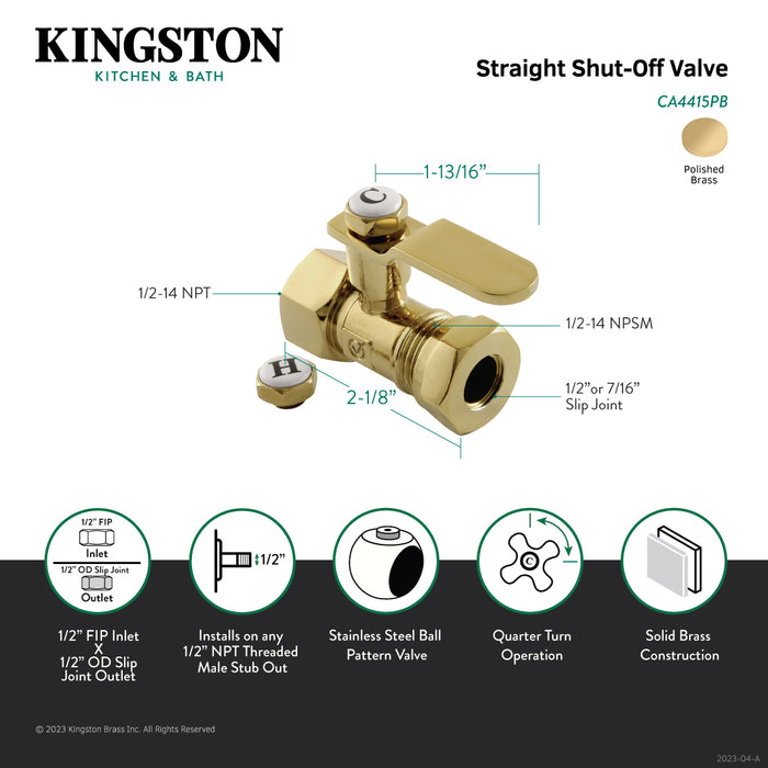 Kingston Sona CA4415PB - Whitaker 1/2-Inch FIP x 1/2-Inch or 7/16-Inch Slip Joint Quarter-Turn Straight Shut-Off Valve, Polished Brass