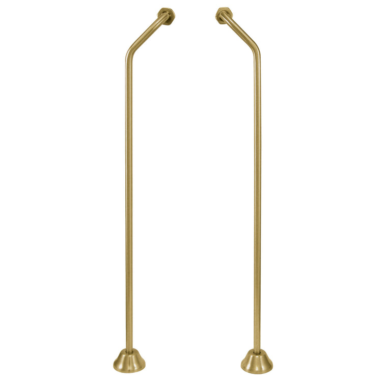 Complete your bath design with this offset clawfoot tub faucet supplies from Kingston Brass. The offset water supplies are constructed from high quality brass for strong durability and reliability for years to come. Its premier finish resists tarnishing and corrosion. The supplies are sold in pairs with overall dimensions of 25-inch x 2-3/4 inch and the 2-3/8 inch diameter flanges.