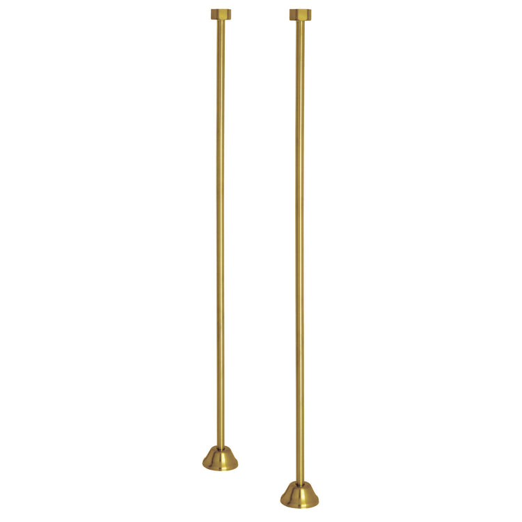 Complete your bath design with the these straight water supplies from Kingston Brass. The supply lines are constructed from high quality brass for strong durability and reliability for years to come. The supplies are sold in pairs featuring 29-1/8 inch length with a 2-3/8 inch diameter on the flanges.