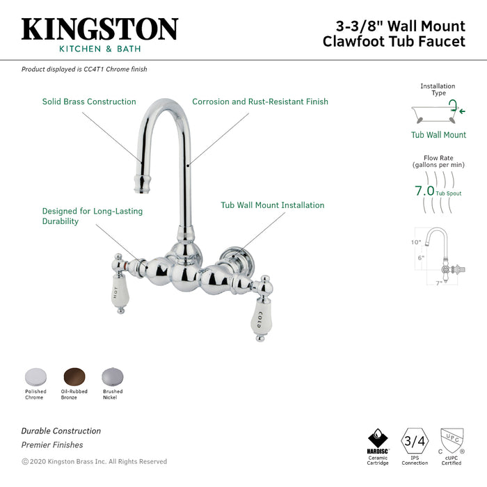 Kingston Heirloom CC4T1 - Vintage Two-Handle 2-Hole Tub Wall Mount Clawfoot Tub Faucet, Polished Chrome