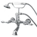 Wall mount clawfoot tub faucets are the perfect fixture to add decorative flair within your bathroom because of their unique architectural elements. With vintage opulence, this will complete your refined bathroom decorum with the help of its premium polished chrome finish and traditionally styled handheld shower. The solid brass construction also makes for a heavy, quality made product.