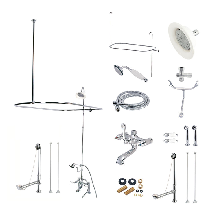 To wrap up your traditionally styled home decorum, incorporate the refinement of one of Kingston Brass' clawfoot tub faucet packages for an all-inclusive and reliable complement to your clawfoot tub. A top-to-bottom beautiful styling is achieved with these coordinated pieces from the shower enclosure down to the drain. All included products are made from sturdy materials and a premium finish for a reliable and long lasting set to last for years to come. Includes faucet, water supply lines, drain, and shower enclosure.