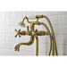 Kingston CCK226K7 Three-Handle 2-Hole Freestanding Clawfoot Tub Faucet Package with Supply Line and Stop Valve, Brushed Brass