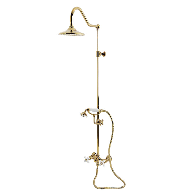 Kingston CCK3662PX Wall Mount Rain Drop Shower System with Hand Shower, Polished Brass