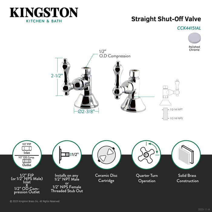 Kingston Heirloom CCK44151AL - Trimscape 1/2-Inch FIP x 1/2-Inch O.D. Comp Quarter-Turn Straight Shut-Off Valve, Polished Chrome