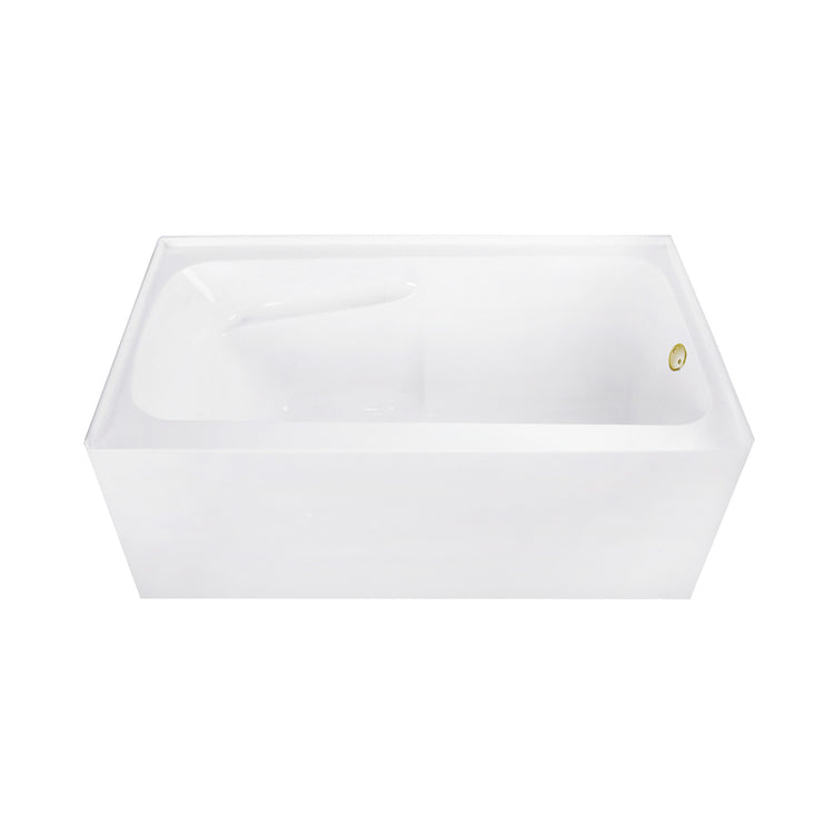 Aqua Eden CVTAP543023R7 54-Inch Acrylic Rectangular 3-Wall Alcove Tub Combo with Armrests and Waste and Overflow Drain (Right Hand Drain), Glossy White/Brushed Brass