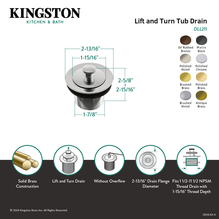 Kingston Heirloom DLL211 - Trimscape Brass Lift and Turn Tub Drain, Polished Chrome