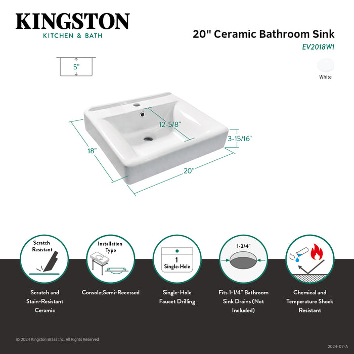 Kingston Tulare EV2018W1 - Concord 20-Inch Ceramic Console Sink Basin Only (1-Hole), White