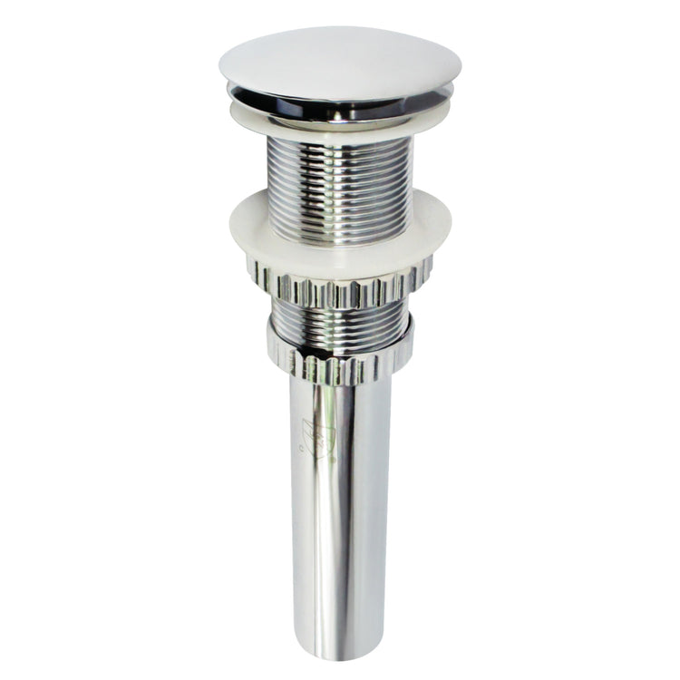 Push-up bathroom drains feature a spring mechanism to easily close and open the fixtures. Available in multiple finishes to match your faucet, the Coronel push pop-up bathroom sink drain without overflow will fit standard bathroom sink sizes. This drain assembly with large size of push button cap.