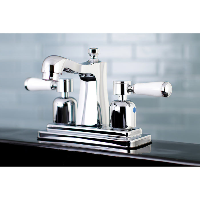 Crafted to bring aesthetic beauty alongside exceptional performance, the feature of porcelain lever handles and rounded architecture solidifies pristine refinement in this faucet. Centerset bathroom faucets are ideal for smaller bathrooms and feature an easy 3-hole installation. The Paris 4-inch centerset bathroom faucet with retail pop-up and its featured sturdy brass construction and premium polished chrome finish are guaranteed to glamorize your home's modern ensemble for years to come. Embolden your home ensemble with the addition of this exquisite fixture. A matching finish drain is also included.