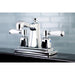 Kingston Tulare FB4641DPL - Paris Double-Handle 3-Hole Deck Mount 4-Inch Centerset Bathroom Faucet with Pop-Up Drain, Polished Chrome
