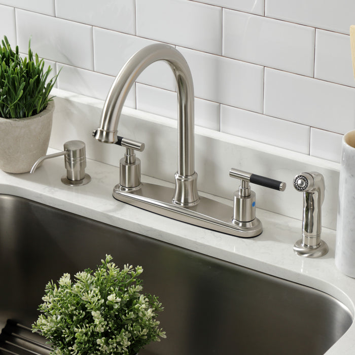 Kingston Tulare FB7798CKLSP - Kaiser Two-Handle 4-Hole 8" Centerset Kitchen Faucet with Side Sprayer, Brushed Nickel