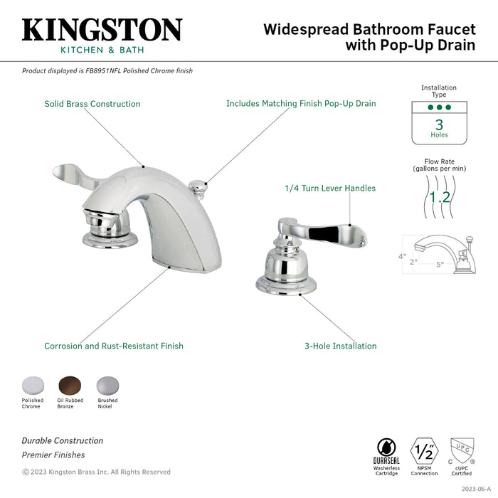 NuWave French FB8951NFL Two-Handle 3-Hole Deck Mount Widespread Bathroom Faucet with Pop-Up Drain, Polished Chrome