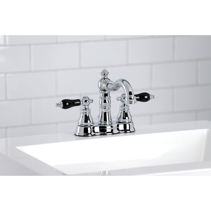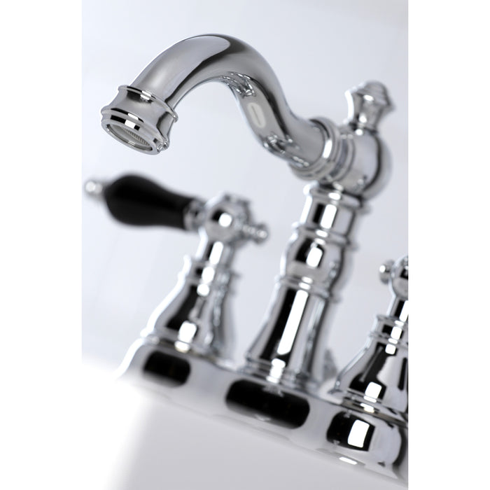 Crafted in commendations to English nobility, the exemplary design of this faucet manifests regality and elegance with its black porcelain handles. The Duchess double-handle 4" centerset bathroom faucet with brass pop-up and its featured sturdy brass construction and premium polished chrome finish are guaranteed to glamorize your home's traditional ensemble for years to come. Centerset bathroom faucets are ideal for smaller bathrooms and feature an easy 3-hole installation. Glamorize your home today with the traditional elegance of this faucet. A matching finish drain is also included.