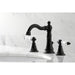 The exquisite design of this faucet tastefully flatters the elegant architecture of traditional homes with its fine detailing. Ideal for more spacious bathrooms, widespread faucets are more spread apart and feature a 3-hole installation. The English Classic widespread bathroom faucet and its featured sturdy brass construction and premium matte black finish are guaranteed to glamorize your home's traditional ensemble for years to come. A matching finish drain is also included.