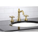 Kingston Heirloom FSC1973AAX-American Classic Two-Handle 3-Hole Deck Mount Widespread Bathroom Faucet with Brass Pop-Up, Brushed Brass