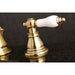 Orchestrated with the flow of the ever-present porcelain lever handles, this faucet prevails a whimsical tune of design to accompany its traditional detailing. Ideal for more spacious bathrooms, widespread faucets are more spread apart and feature a 3-hole installation. The American Patriot widespread bathroom faucet and its featured sturdy brass construction and premium brushed brass finish are guaranteed to glamorize your home's traditional ensemble for years to come. Add a hint of vintage styling to your household with this faucet. A matching finish drain is also included.