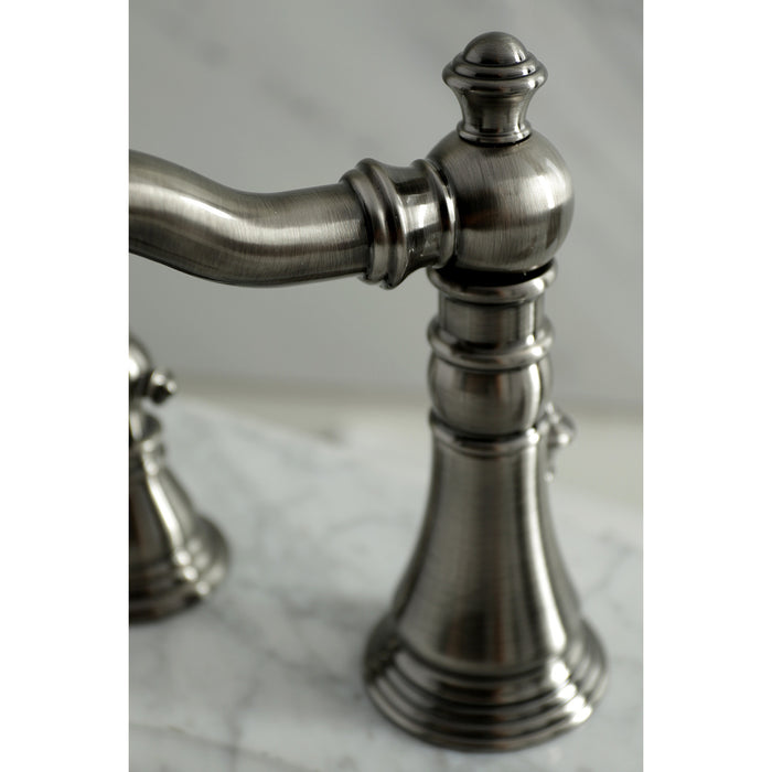 Kingston Heirloom FSC1974APL - American Patriot Two-Handle 3-Hole Deck Mount Widespread Bathroom Faucet with Brass Pop-Up, Black Stainless