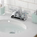 The chic fashion of this faucet is distinguished by its expressive artistry and flat, ergonomic levers. Centerset bathroom faucets are ideal for smaller bathrooms and feature an easy 3-hole installation. The NuvoFusion 4-inch centerset bathroom faucet with retail pop-up and its featured sturdy brass construction and premium polished chrome finish are guaranteed to glamorize your home's modern ensemble for years to come. Revive the obsolete with the illustrious prestige of this fixture. A matching finish drain is also included.