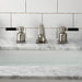 This faucet tastefully interweaves top-notch ergonomic design and the sheen of contemporary simplicity with its black silicone rubber coated handles and cylindrical facets. Ideal for more spacious bathrooms, widespread faucets are more spread apart and feature a 3-hole installation. The Kaiser 8" Widespread Bathroom Faucet, with its featured sturdy brass construction and premium brushed nickel finish, are guaranteed to glamorize your home's modern ensemble for years to come. Furnish your home surrounding with the modern flair of this fixture. A matching finish drain is also included.