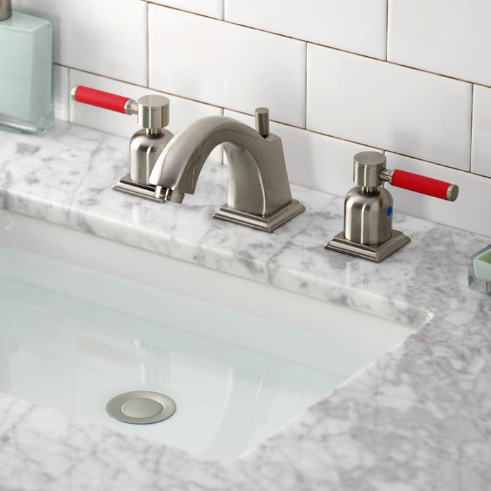 Kingston Tulare FSC4688DKL - Kaiser Two-Handle 3-Hole Deck Mount Widespread Bathroom Faucet with Pop-Up Drain, Brushed Nickel