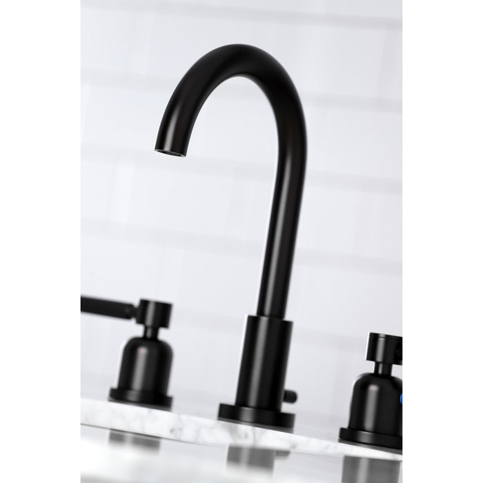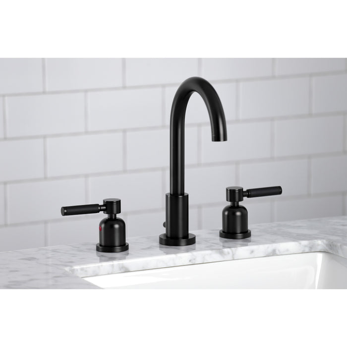 Kingston Sona FSC8920DKL - Kaiser Two-Handle 3-Hole Deck Mount Widespread Bathroom Faucet with Brass Pop-Up, Matte Black