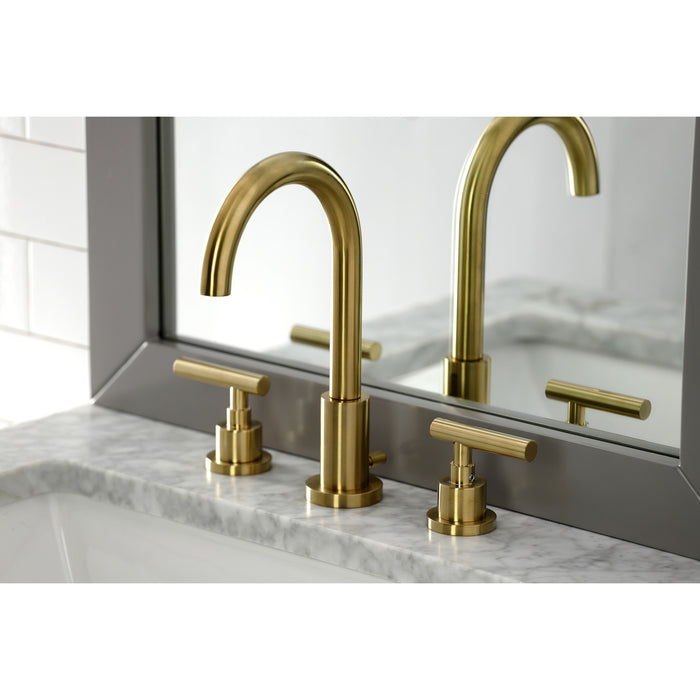 Kingston Sona FSC8923CML - Manhattan Two-Handle 3-Hole Deck Mount Widespread Bathroom Faucet with Brass Pop-Up, Brushed Brass