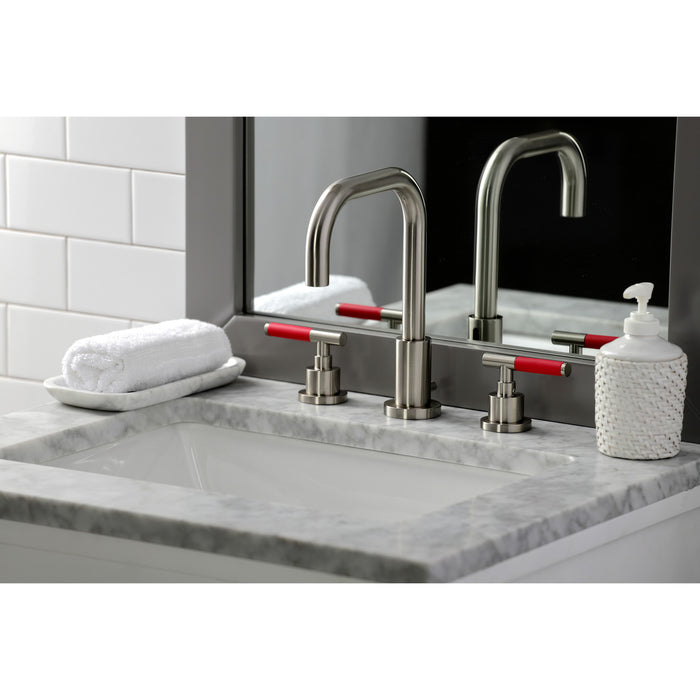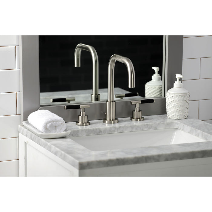 Kingston Sona FSC8938CKL - Kaiser Two-Handle 3-Hole Deck Mount Widespread Bathroom Faucet with Brass Pop-Up, Brushed Nickel