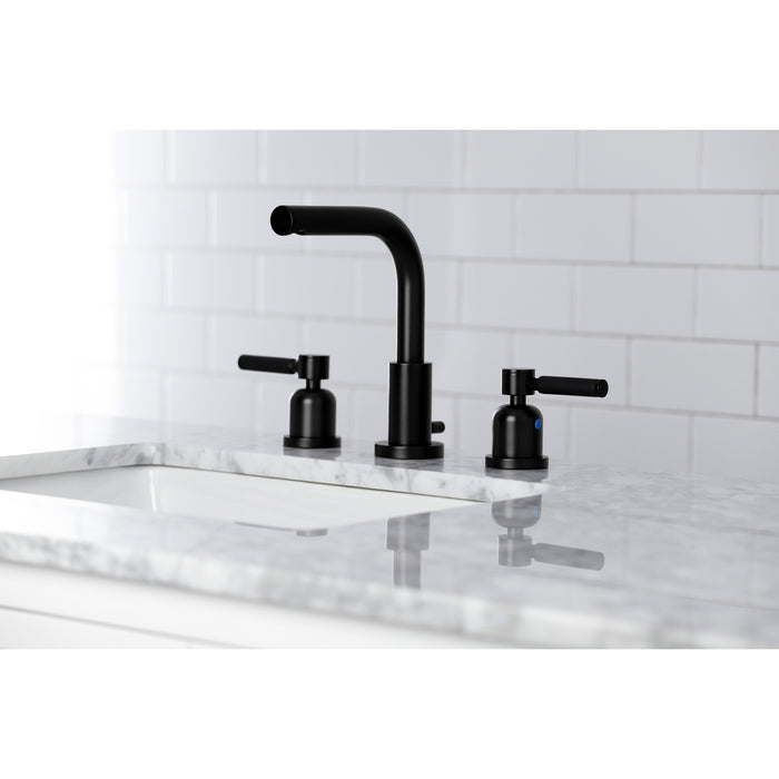 Kingston Sona FSC8950DKL - Kaiser Two-Handle 3-Hole Deck Mount Widespread Bathroom Faucet with Brass Pop-Up, Matte Black