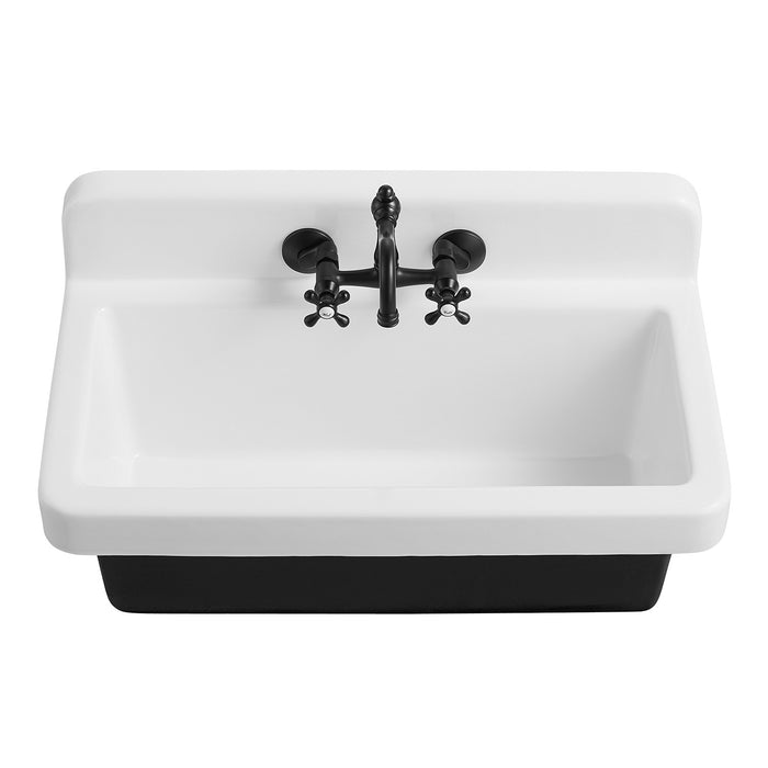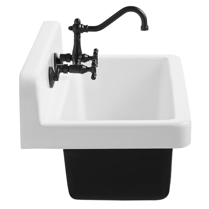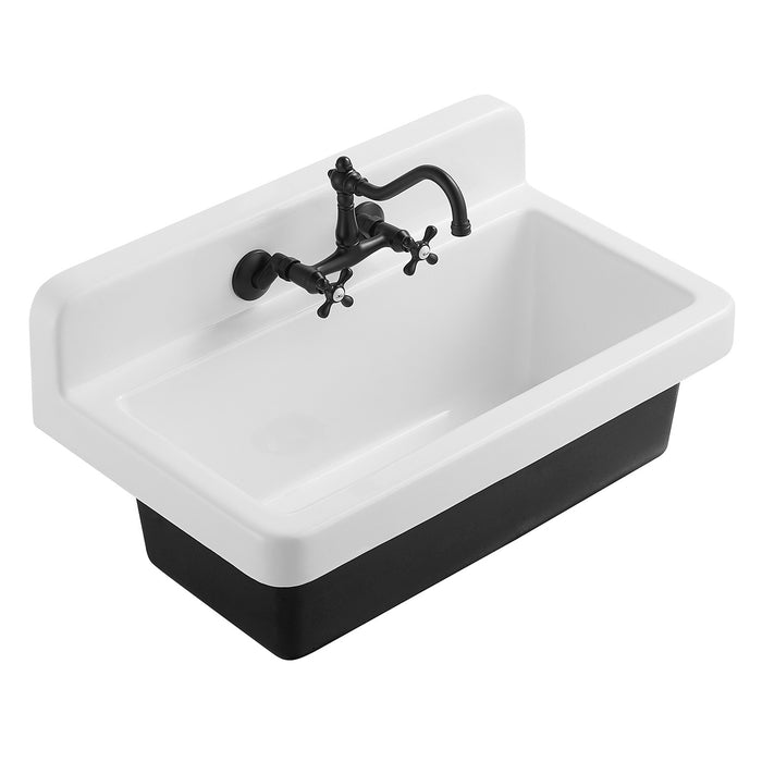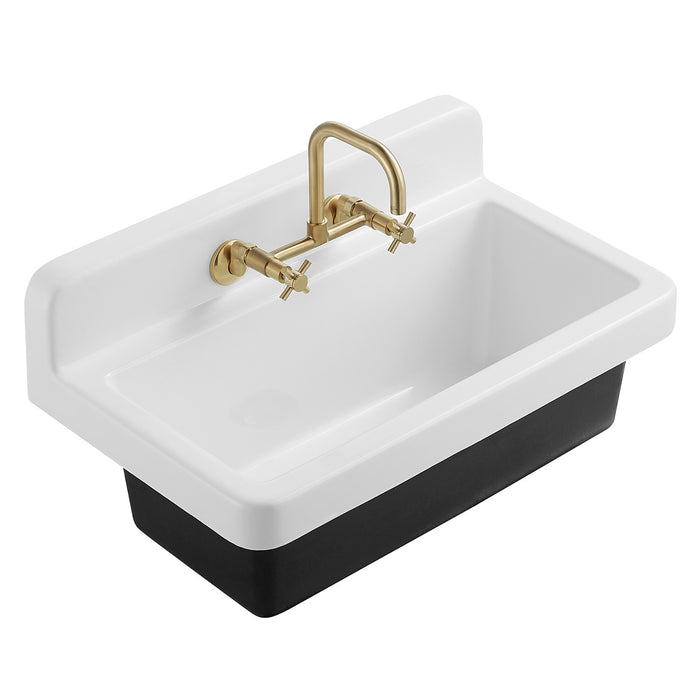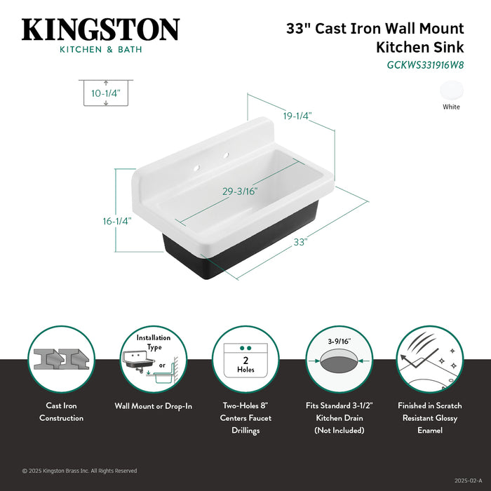 Kingston Heirloom GCKWS331916W8 - Petra Galley 33-Inch Cast Iron Single Bowl Wall Mount Kitchen Sink, White