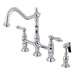 Heritage KS1271ALBS Two-Handle 4-Hole Deck Mount Bridge Kitchen Faucet with Brass Side Sprayer, Polished Chrome